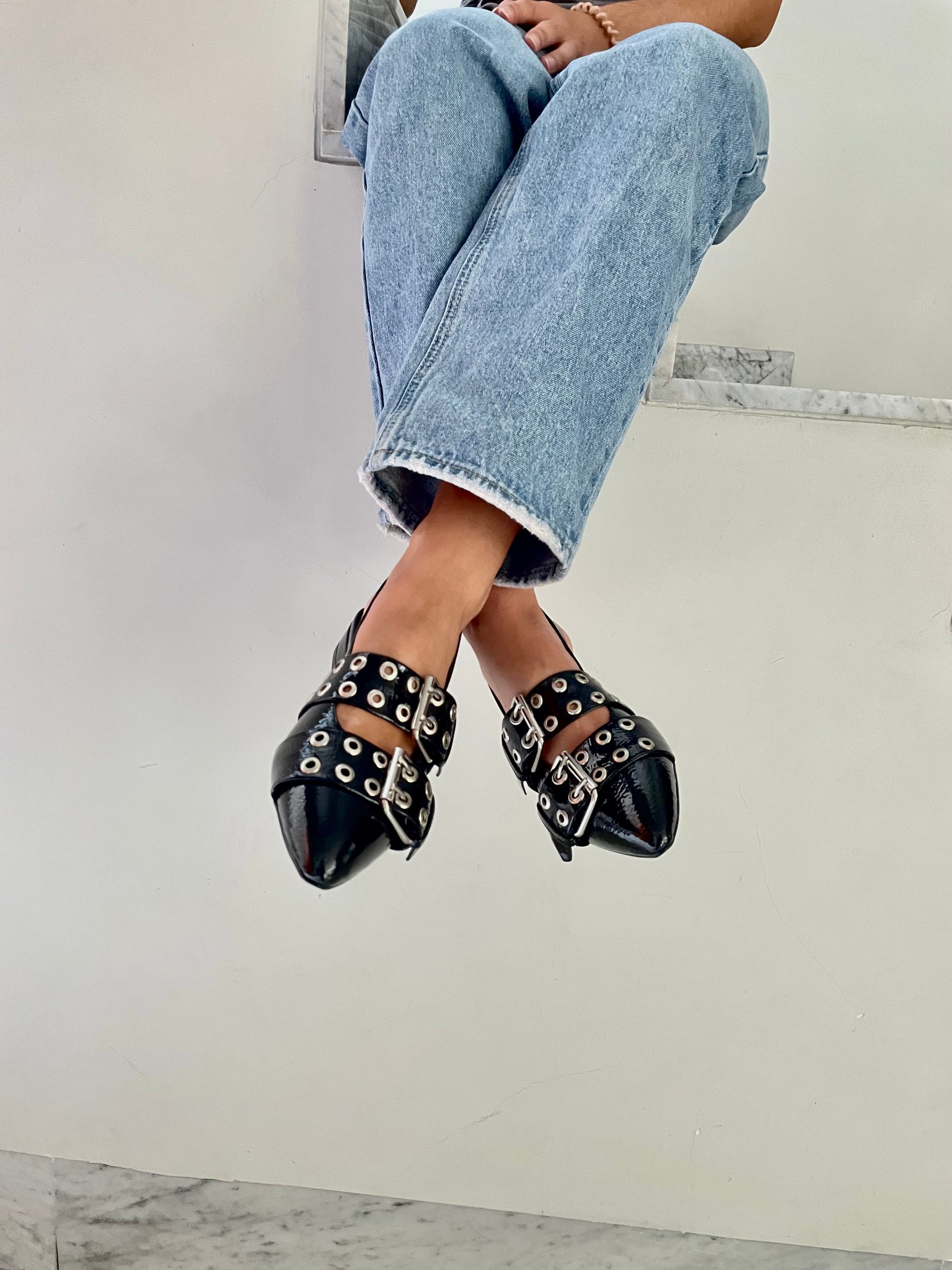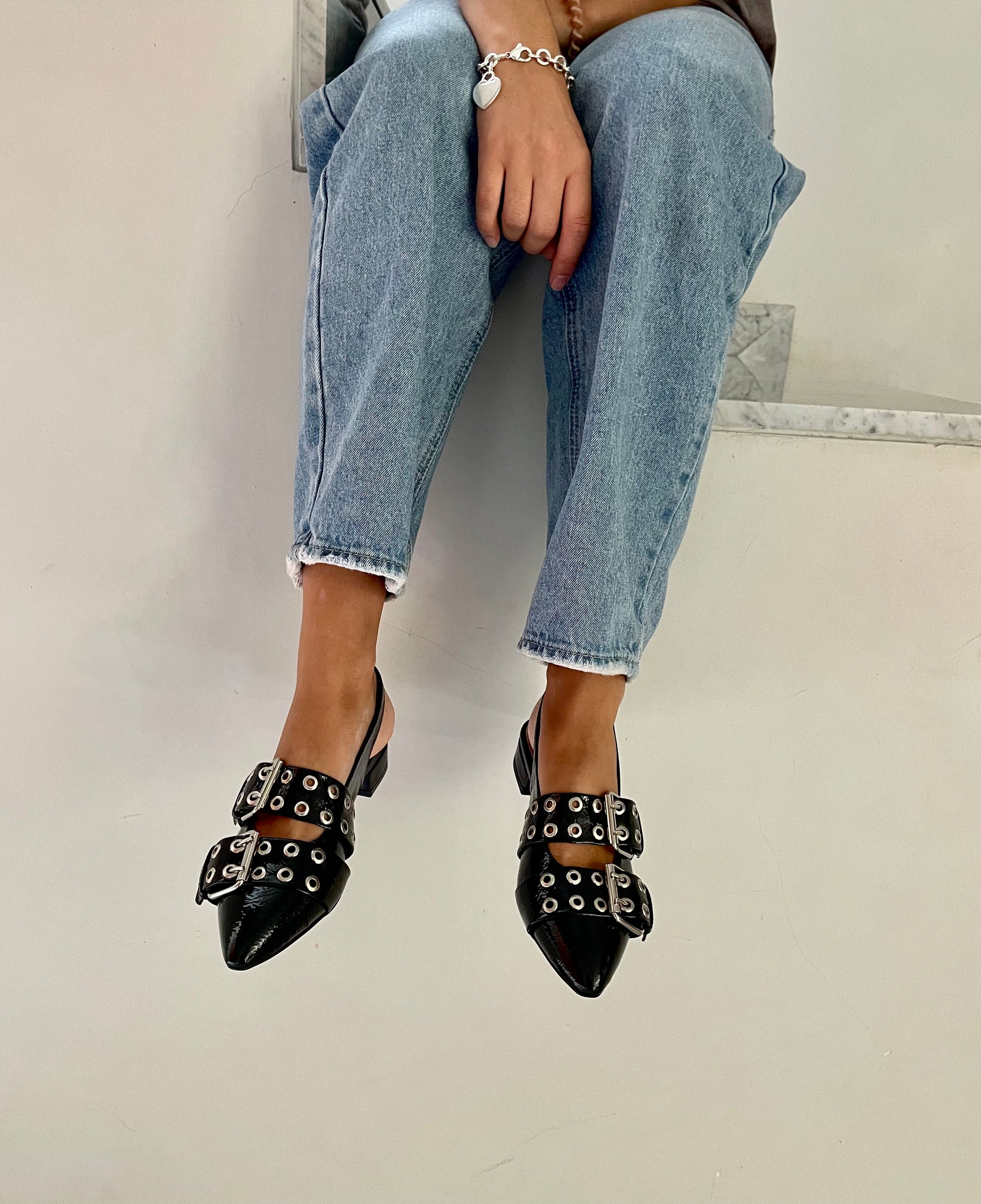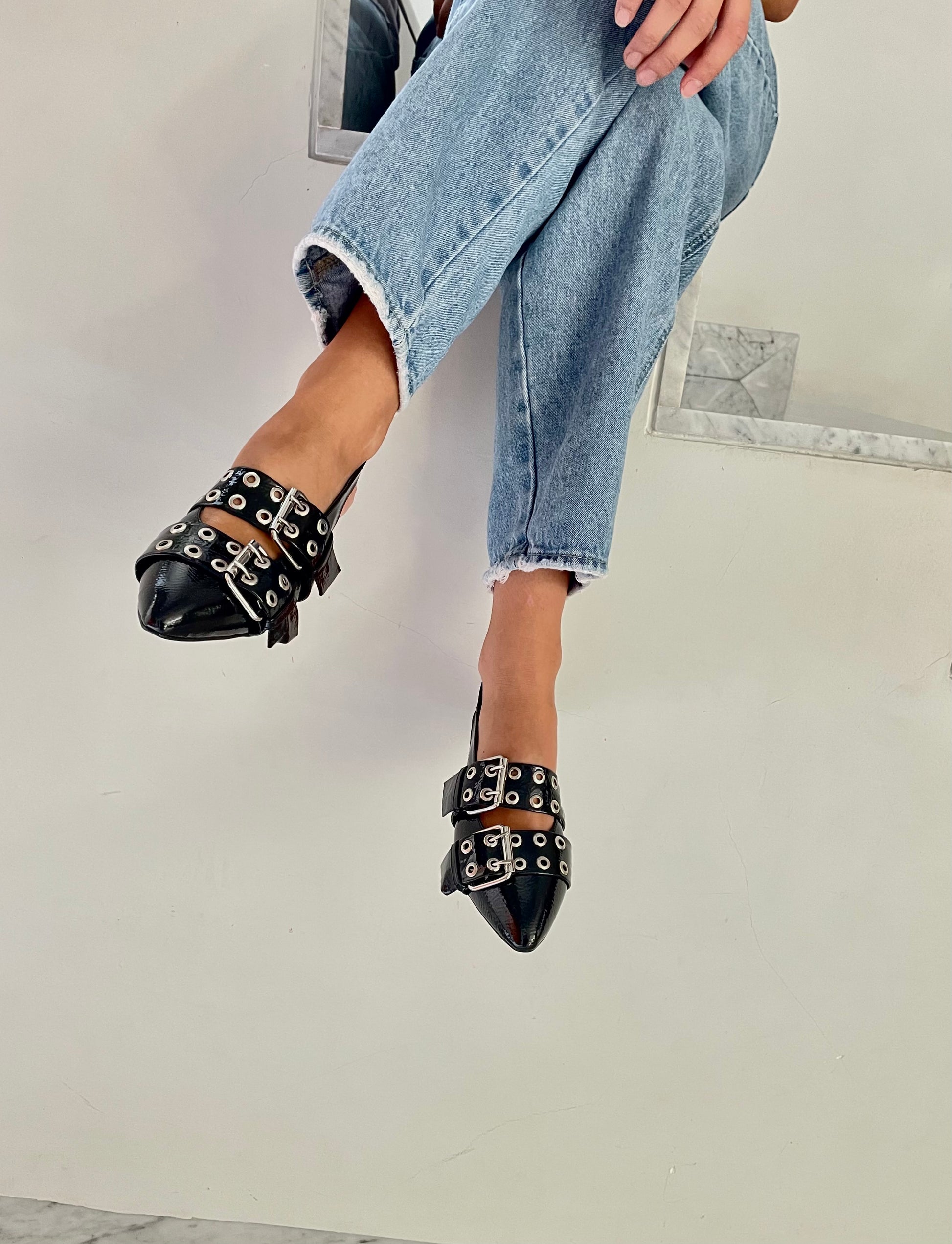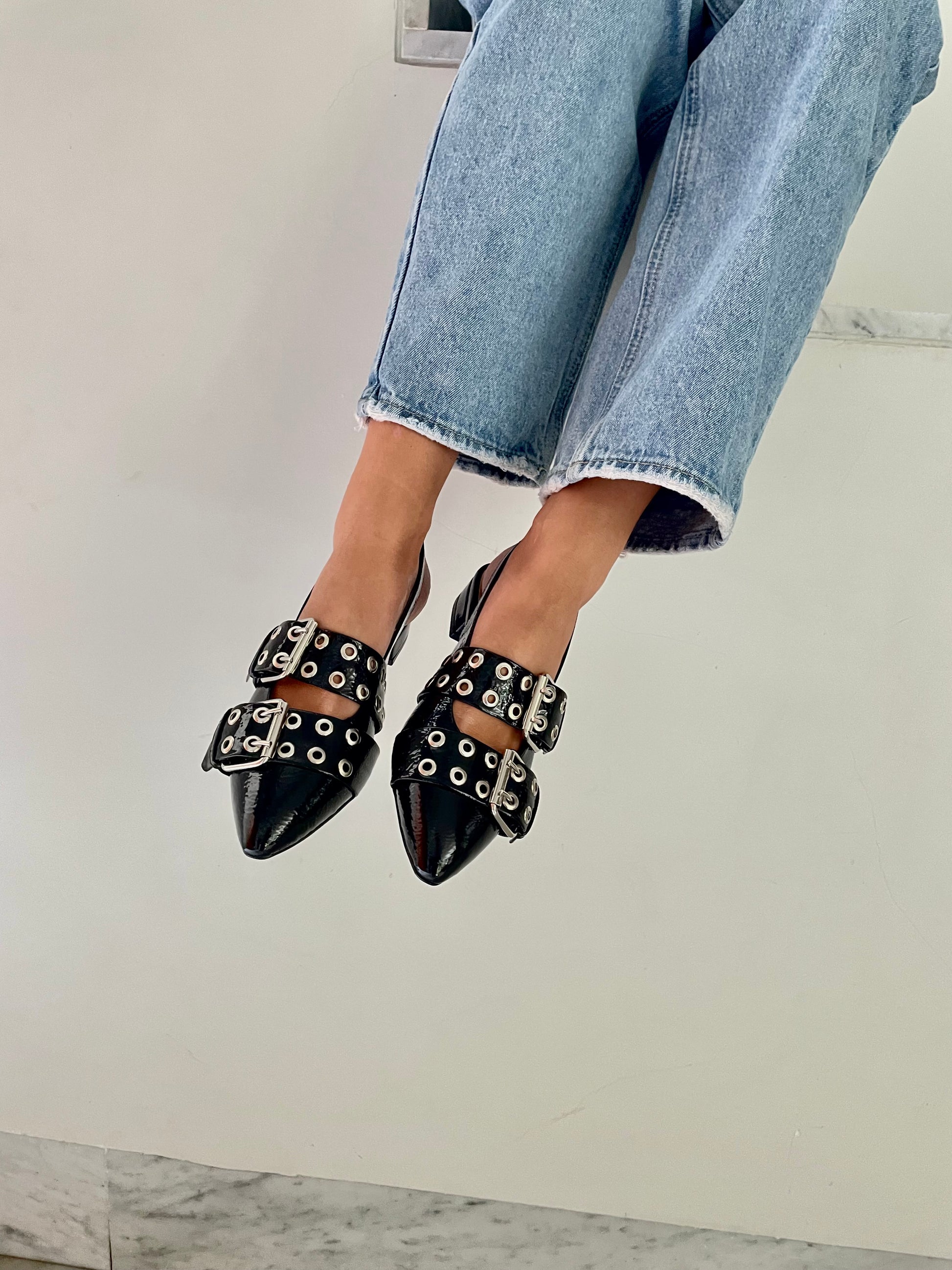 Zapatos negros de charol negro con 3cm de tacón.