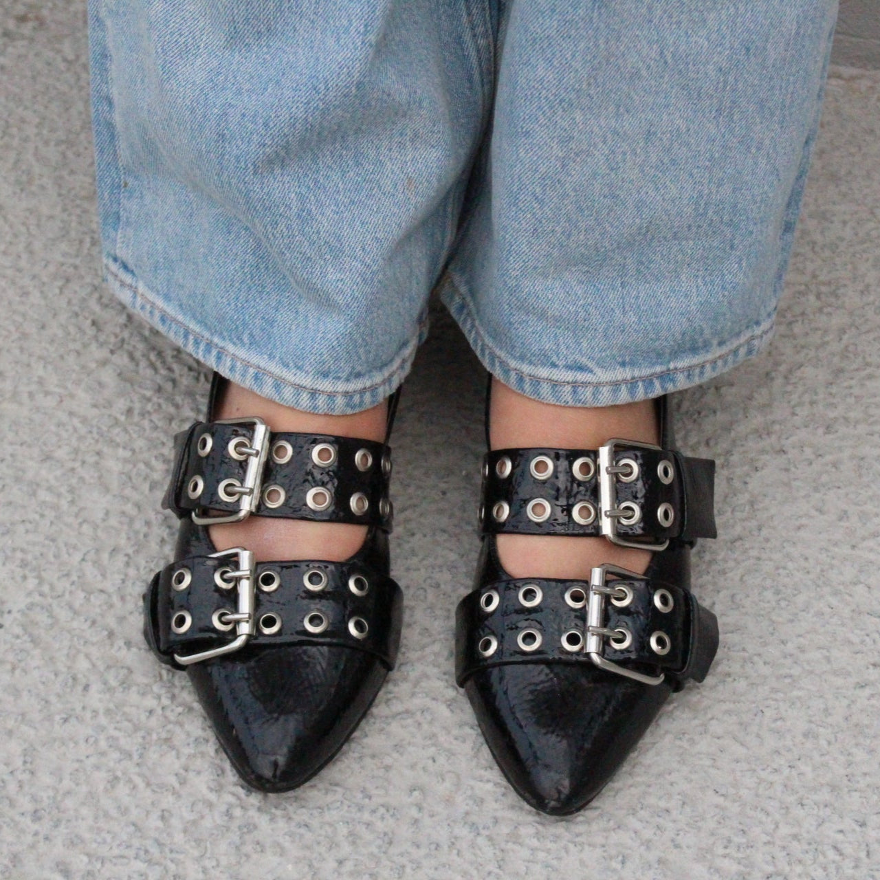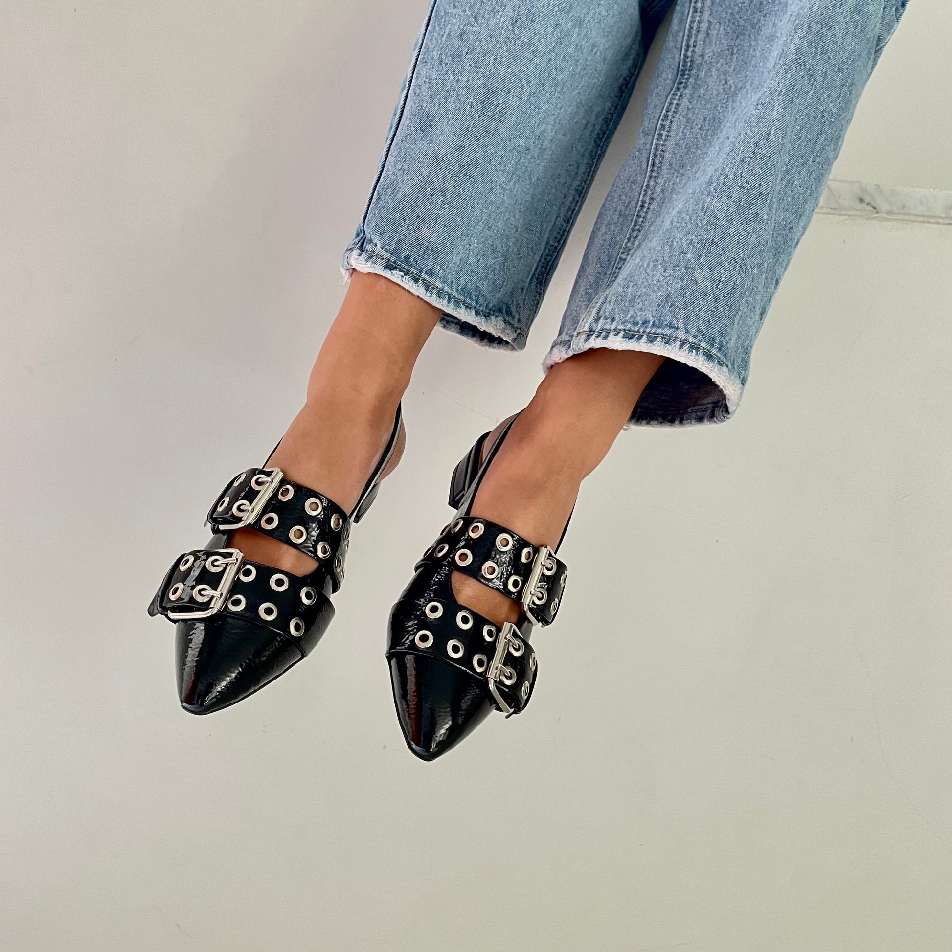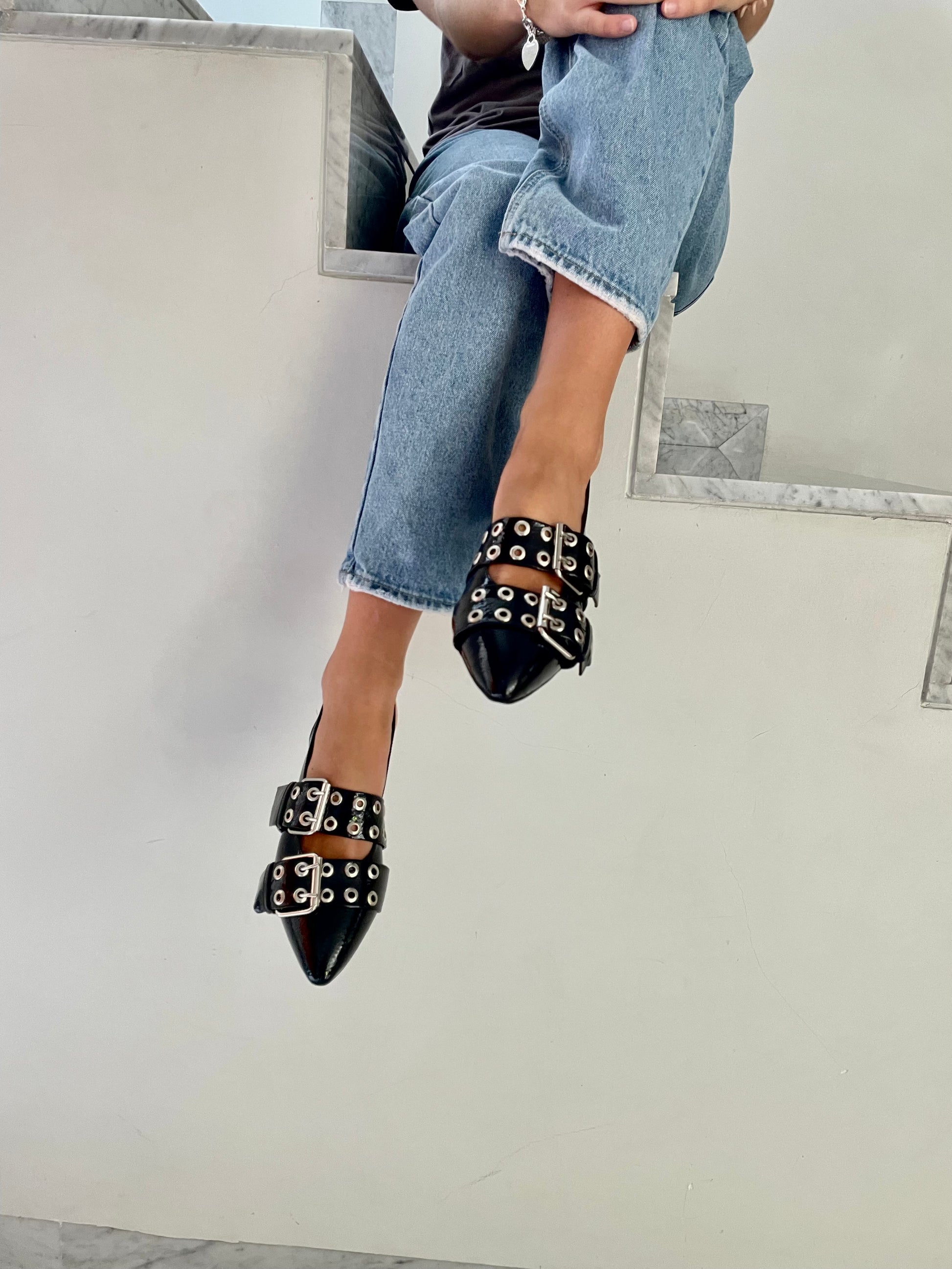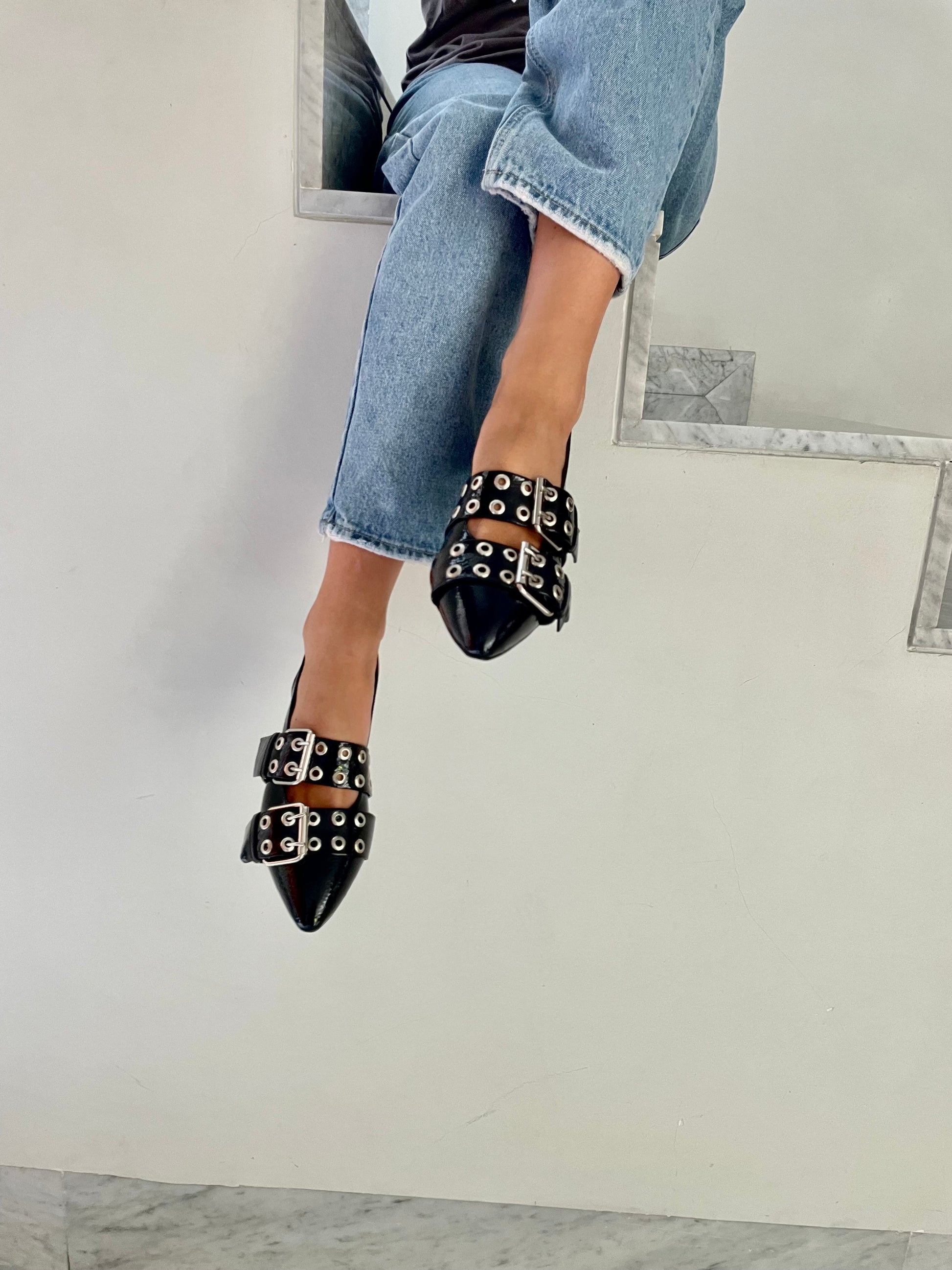 Zapatos negros de charol negro con 3cm de tacón.
