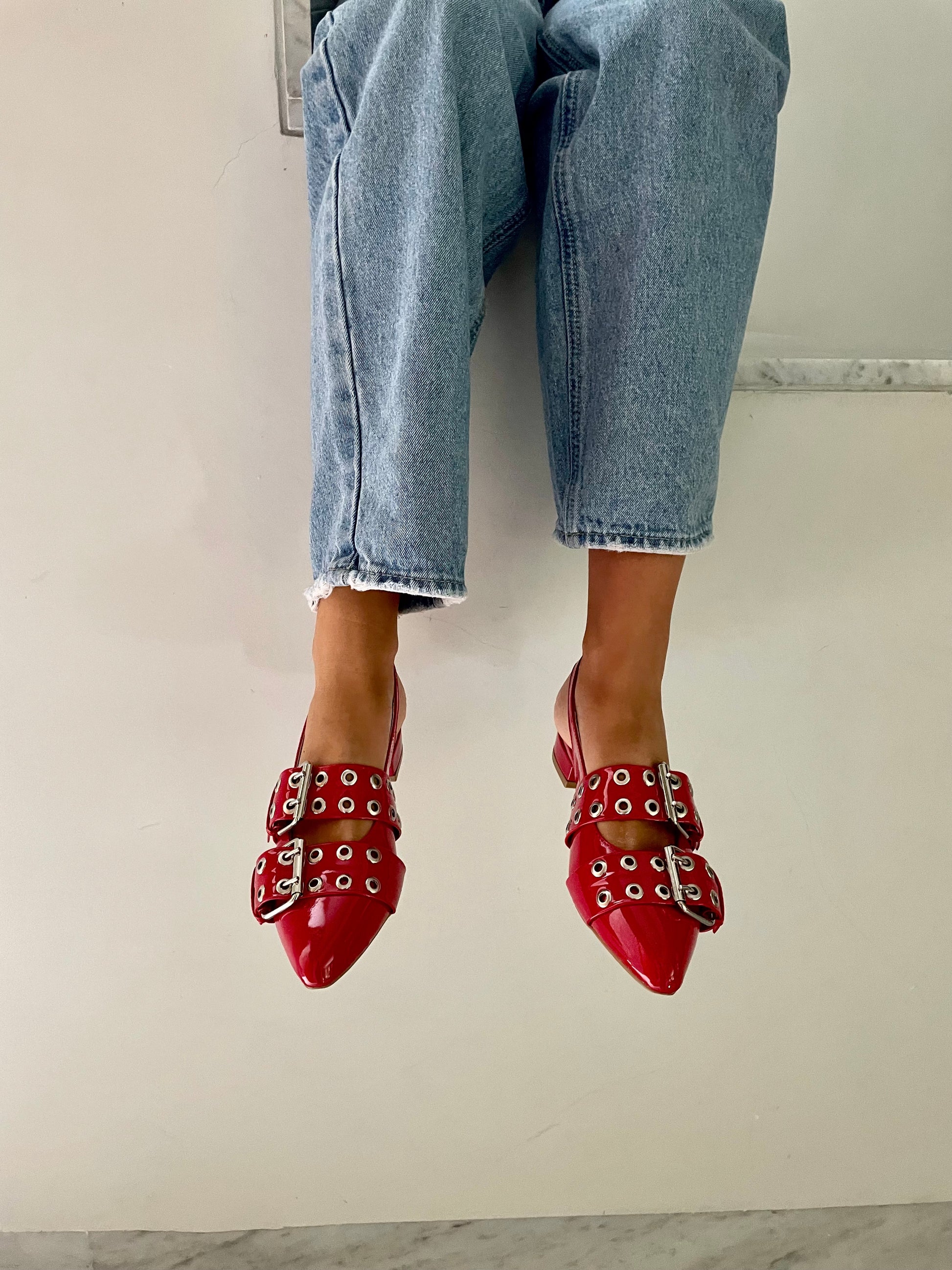 Zapatos rojos de charol rojos con 3cm de tacón.